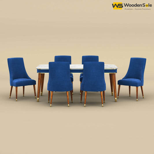 Dublin Marble Top 6 Seater Dining Set (Velvet, Royal Blue)