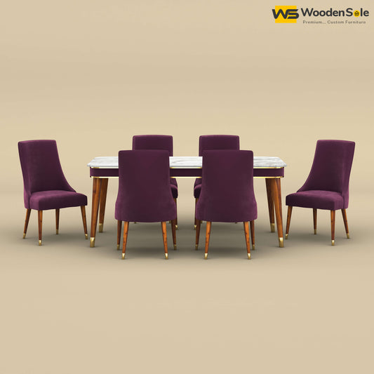 Dublin Marble Top 6 Seater Dining Set (Velvet, Dark Purple)