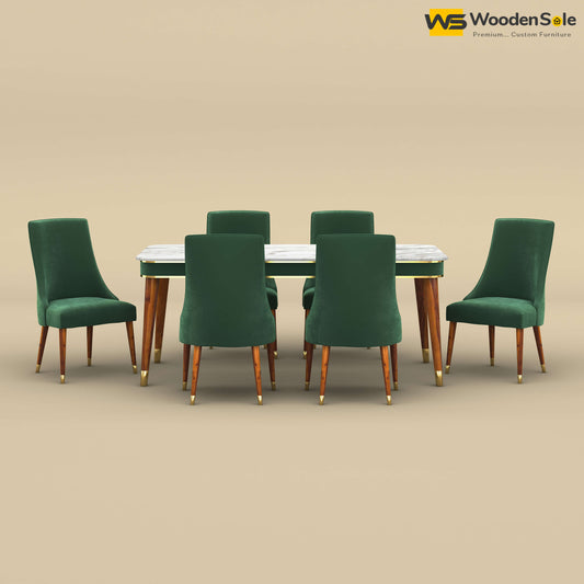 Dublin Marble Top 6 Seater Dining Set (Velvet, Forest Green)
