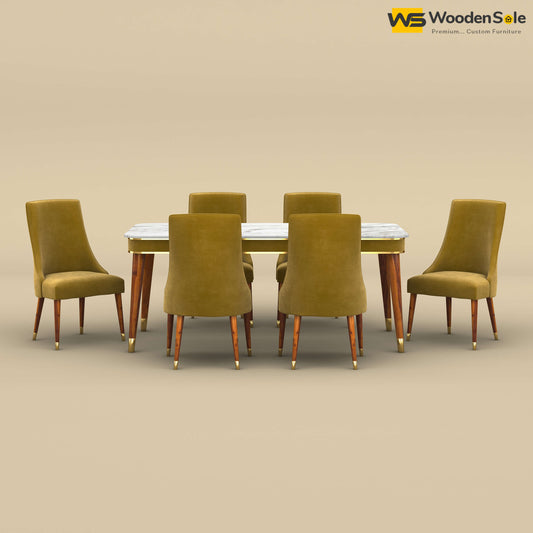 Dublin Marble Top 6 Seater Dining Set (Velvet, Mustard Yellow)