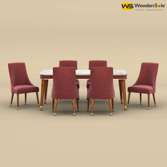 Dublin Marble Top 6 Seater Dining Set (Velvet, Pink)